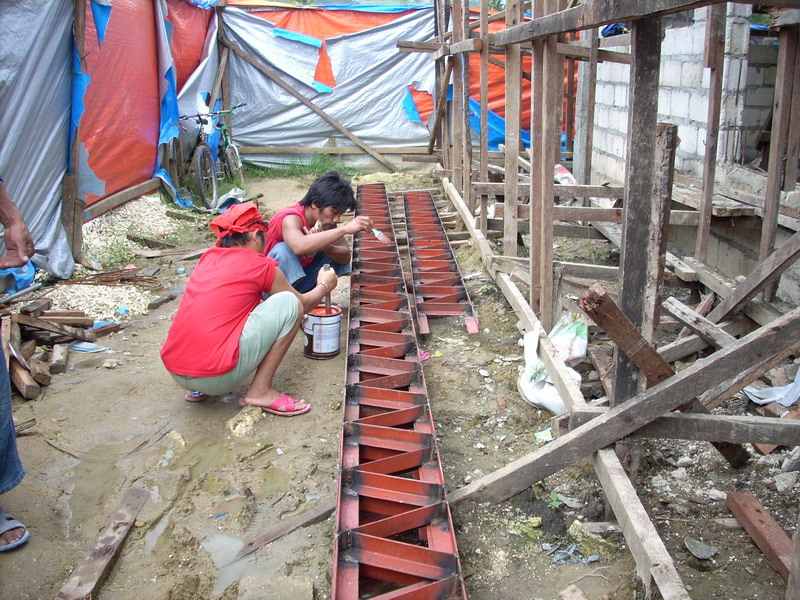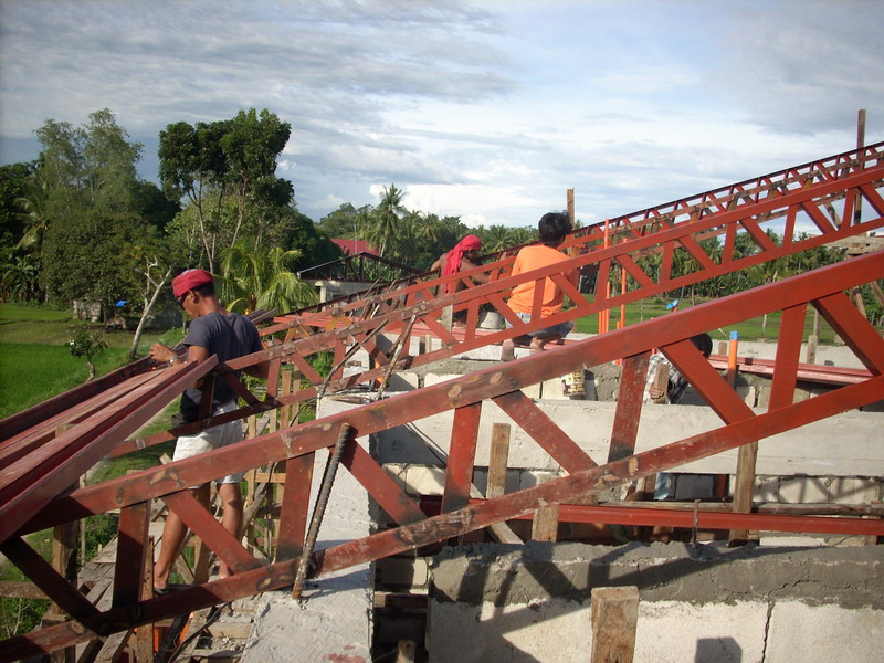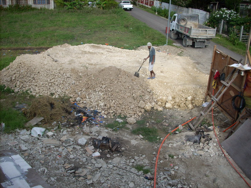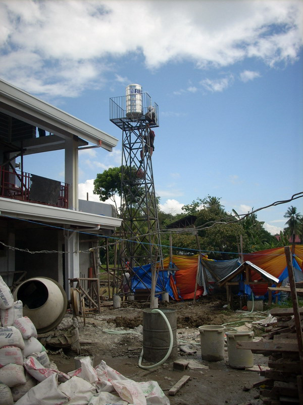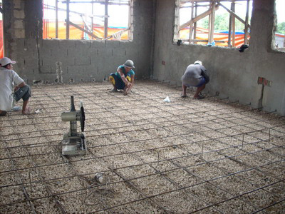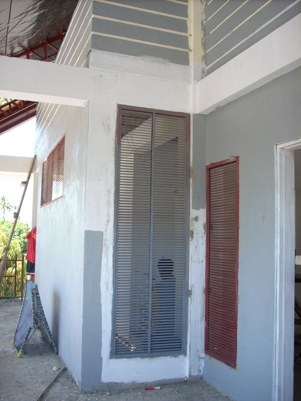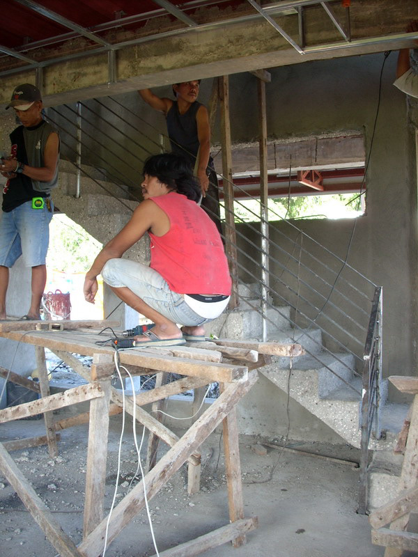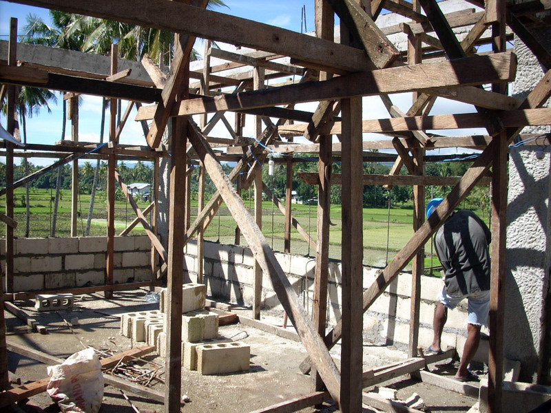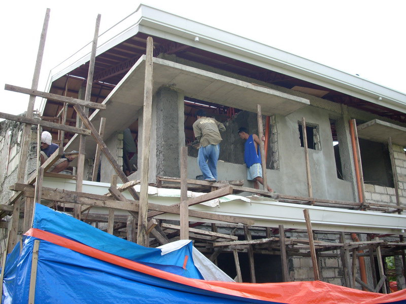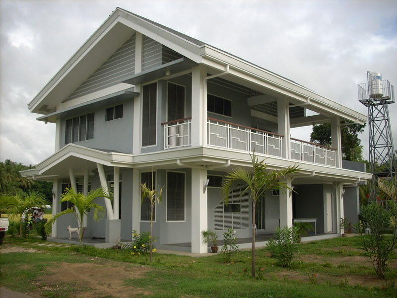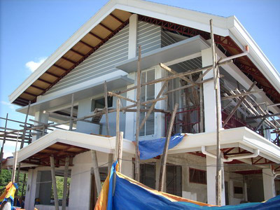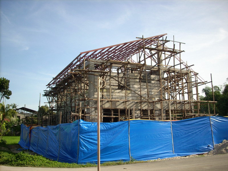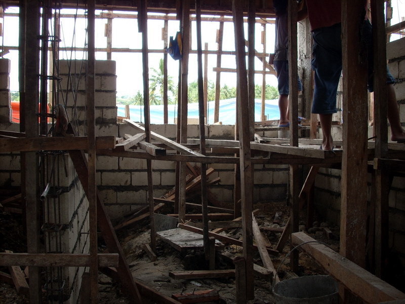 Nachdem alle nötigen Papiere zum Erwerb des Grundstücks erledigt waren, konnte endlich die Planung begonnen werden. Ursprünglich sollte es ein kleines, einfaches Häuschen werden, aber beim Planen erscheinen die Räume so winzig und immer als zuwenig. Dabei kommt man als Urlaubsgast im Normalfall mit einem kleinen Schlafzimmer und Bad aus. Am Ende der Planungsreihe stand ein Haus mit etwa 190 m² Gesamtgrundfläche, darin sind allerdings die beiden großzügigen Terrassen enthalten. Hier nun die Grafiken, welche die fertige Ansicht simulieren. Ganz unten finden Sie den Grundriß. It took a long time to finish the title for the lot, but then, planning started. In the beginning it should have been a small house, but while planning all rooms appeared so small. Usually one small room with bath is enough for a traveller. At the end of planning we stood at a house of 190 m², including the two terraces. Here is a simulation of the planned house and the floorplan. Im November 2007 begannen die Arbeiten am 567 m² Grundstück, auf einem ehemaligen Reisfeld am Ortsrand. Im Juni 2008 war das Haus bezugsfertig.